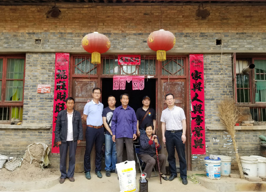 张书记一行先到坚固村村委会和公司驻村干部齐基进行交流,详细了解近期扶贫工作开展情况。在村干部的陪同下,走访了公司结对子帮扶农户家庭,一行老师亲切向老乡了解他们的身体情况、今年的夏收情况及家庭收支情况,鼓励他们发展养殖,将小麦做成绿色成品面粉,放在公司捐建的电商平台上销售,增加经济收入。