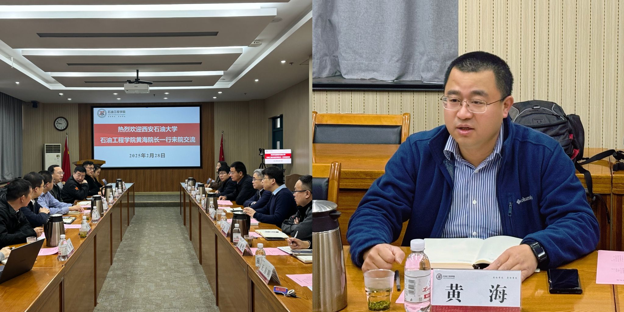 黄海对兄弟院校的热情接待表示感谢,并就公司的学科特色、人才培养成效以及未来发展思路做了简要介绍。双方围绕新时代石油工程领域本科人才培养进行了深入交流,对如何提高员工的综合素质、如何加强实践教学环节、如何推进产学研合作等问题进行了深度探讨。双方一致认为,面对能源转型和产业升级的新形势新挑战,石油工程领域人才培养要紧跟时代步伐,坚持立德树人,深化产教融合、科教融合,强化实践育人,坚持多学科交叉、AI赋能教学,打造拔尖创新型人才培养新模式,着力培养具有家国情怀、全球视野、创新精神和实践能力的高素质复合型人才。