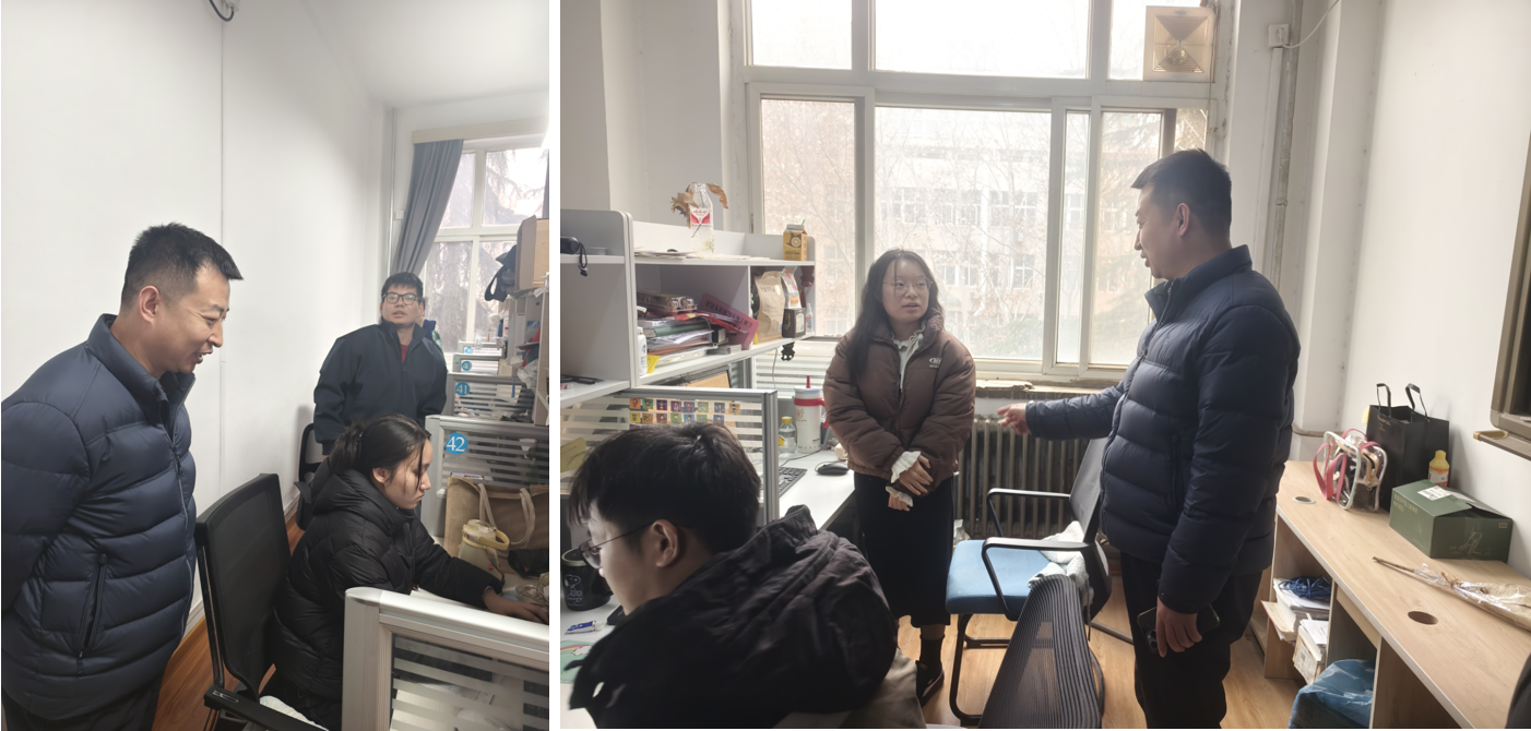 为筑牢寒假校园安全防线,精准掌握留校员工状态,传递公司关怀,1月20日,公司党委副书记艾二鑫带领研究生辅导员,深入员工自习室、宿舍开展专项检查。