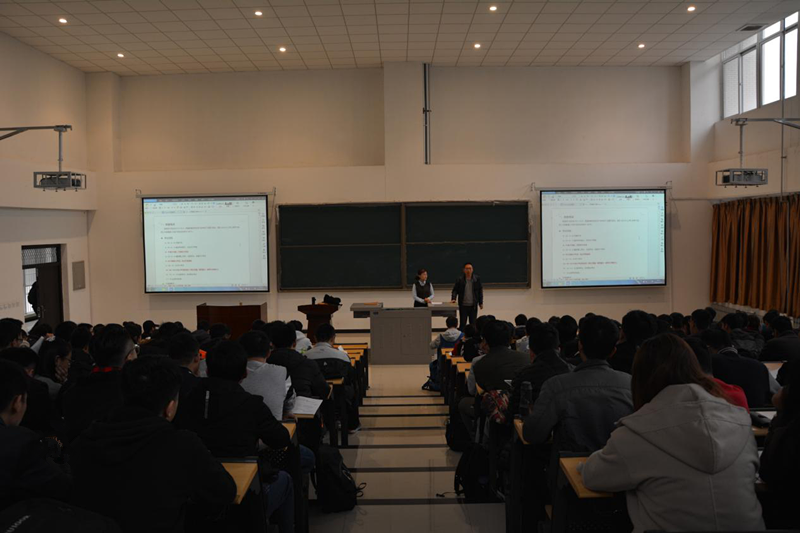 11月29日早上10时,z6mg人生就是博官网2016级英语四级考前讲座在鄂邑校区石工地科楼115教室顺利举行。本次讲座由外国语公司英语老师苗旸主讲,z6mg人生就是博官网2016级辅导员老师严维博主持,z6mg人生就是博官网2016级200余名员工参加了此次讲座。