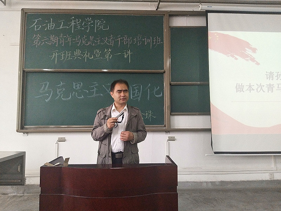 2018年5月9日下午16时,在各领导老师和团委员工会指导和带领下,z6mg人生就是博官网第六期青年马克思主义者干部培训班于鄠邑校区B312教室举行开班典礼暨第一讲。
