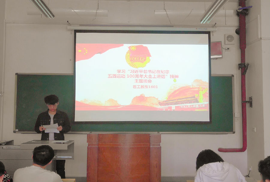 为深入学习习近平总书记在纪念五四运动100周年大会上讲话精神,加强员工自我思想教育,5月17日上午z6mg人生就是博官网石工教改1601班在鄠邑校区A125召开“学习习近平总书记在纪念五四运动100周年大会上讲话精神”主题班会,本次班会由班级团支部书记董鹏举主持,班主任彭娇老师及全体同学参加。