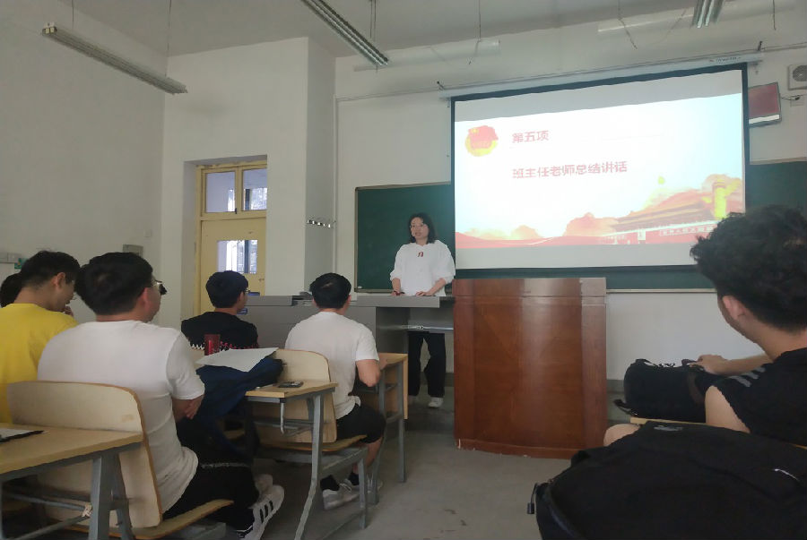 最后,班主任彭娇老师作总结发言。彭老师谈到,今年是五四运动100周年,也是中华人民共和国成立70周年,加强青年爱国主义教育责任重大,本次集中学习意义深远,并指出作为当代老员工应当从自我做起注重实践,让爱国主义体现在实际行动中。会上她对全班同学提出四点具体要求:首先,提高思想觉悟,关注时政;第二,增强爱国主义情怀,将个人利益与国家利益相统一,发扬五四精神,做对国家有用之人。第三,提高自身学习能力与素质,在考研与就业中合理选择,合理规划自己的人生。第四,提高品德修为,做诚信之人,扎实完成好大学每一阶段的学习任务。