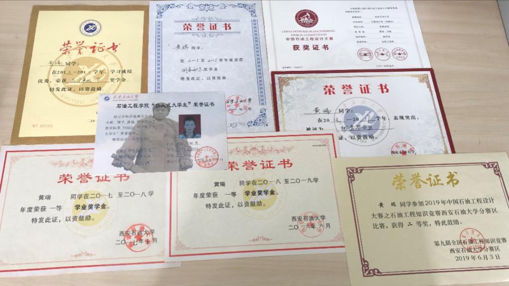 黄瑞在本科阶段学习成绩优异,学分绩点3.85,一次性通过了大学英语四、六级考试和计算机二级考试,获得国家励志奖学金2次,品学兼优一等奖学金1次,并于2017年被推荐免试攻读本校油气田开发工程专业硕士学位。黄瑞在研究生期间坚持把学习和科研放在首要位置,果断践行求知和探索,他深信没有比人更高的山,没有比脚更远的路,因此在学习和科研中,他脚踏实地,一步一个脚印,始终保持着稳健的步伐努力向上攀登,取得了不菲的成绩,始终专心搞学术,获得了2020级校级优秀毕业论文