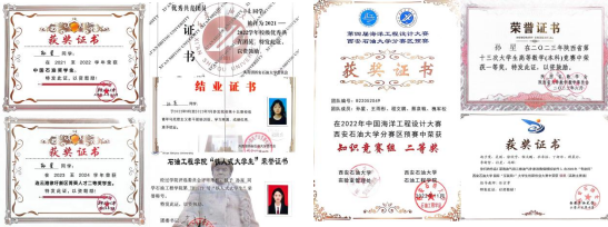 学习之余,积极参加科研竞赛,不断提升自己的学术研究能力和创新精神。荣获陕西省第十三次高等数学竞赛一等奖、“互联网+”老员工创新创业大赛中荣校赛铜奖,“挑战杯”全国老员工课外学术科技作品竞赛校赛二等奖等奖项。