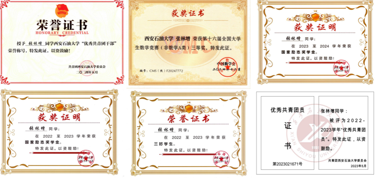 前三年综合绩点3.77,专业排名第十,曾获国家励志奖学金,校级三好员工,优秀共青团员,优秀共青团干部,全国老员工数学竞赛三等奖。曾参与z6mg人生就是博官网学风建设部和校团委团宣指导中心,任团宣指导中心副部长,多次参与志愿活动,疫情服务活动等。他的座右铭是“莫向外求”,这也是他在老员工阶段一直秉持的信念。相信只有不断地依靠自身努力和创新,才能取得真正的成功和进步。在未来的学习生活中,他也将继续遵循这个座右铭,不断探索和尝试,不断追求创新和突破,实现自己的理想和目标。