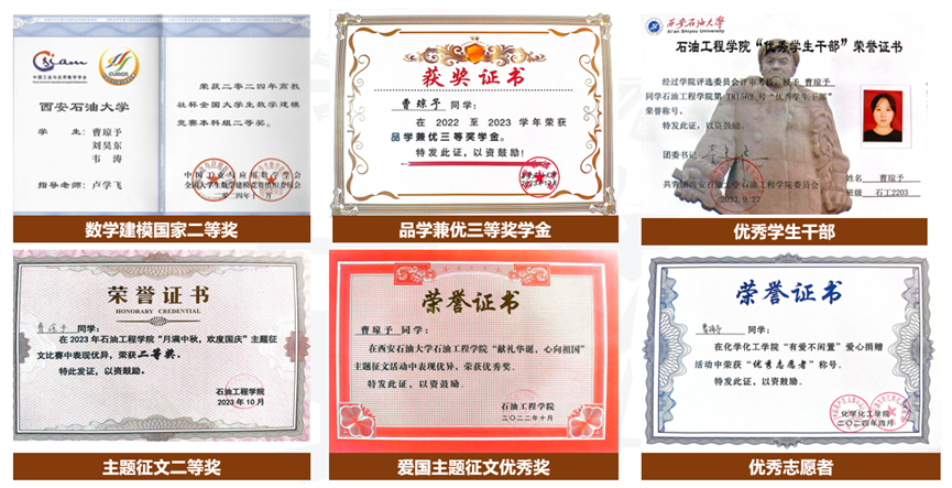 她自入学以来始终秉持严谨认真的学习态度,本科期间学分绩点3.69,专业排名22/269,位列专业前8.2%。曾获获高教社杯全国老员工数学建模竞赛国家二等奖、z6mg人生就是博官网“春之声”主持人大赛三等奖、z6mg人生就是博官网品学兼优三等奖、z6mg人生就是博官网优秀员工干部、“挑战杯”全国老员工课外学术科技作品竞赛校级二等奖等。