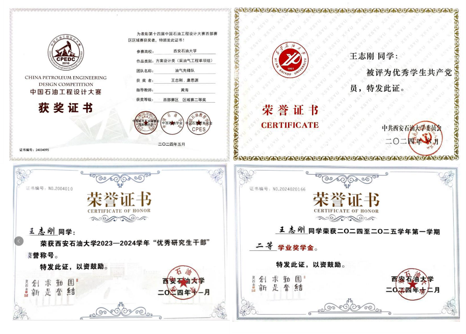 1)第十四届中国石油工程设计大赛采油气工程单项组西部赛区二等奖;
