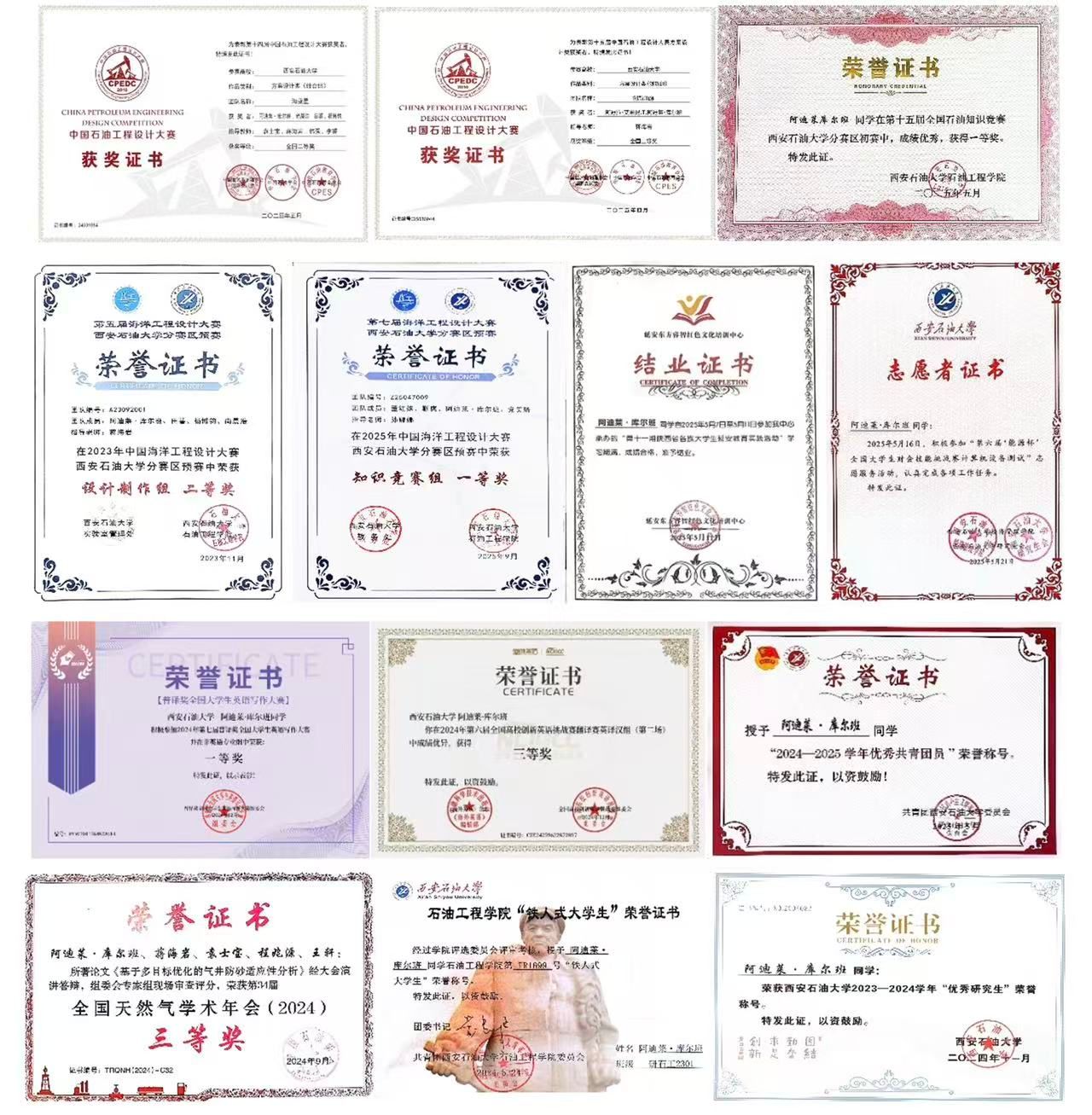 阿迪莱同学于2023年推免至z6mg人生就是博官网攻读硕士研究生。自入学以来,她始终严于律己,秉持严谨踏实的学习态度,课程成绩优异,稳居专业前列,具备扎实的专业基础。在科研方面,她主动探索、积极投入课题研究,目前已发表SCI论文两篇、EI论文一篇,会议论文一篇。在实践能力上,她注重综合能力的提升,积极参与学科竞赛,在团队协作中主动沟通,乐于奉献,展现出良好的协作精神与责任意识。日常工作中,她细心负责、恪尽职守,表现出较强的集体责任感。