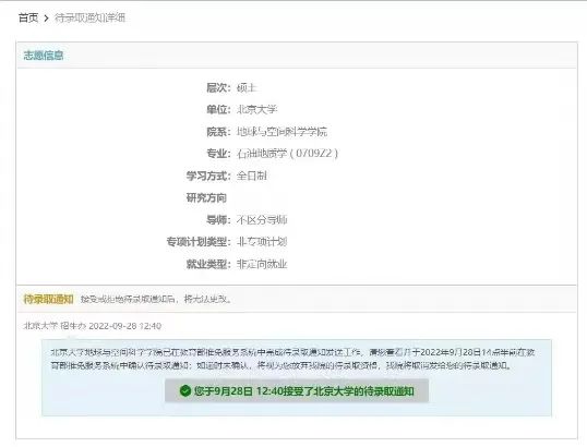 王志超三年的刻苦努力得到了回报。他获得了中国科公司大学、中国石油勘探开发研究院、北京大学的拟录取资格。最终,他选择去北京大学深造,继续自己的科研生涯。