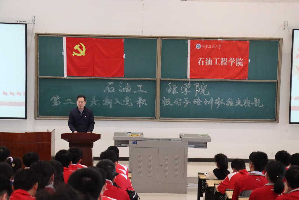 202148日中午,z6mg人生就是博官网第二十九期入党积极分子培训班结业典礼在鄠邑校区石工地科楼115教室顺利召开。公司党委副书记张建高老师出席并作总结讲话,公司党委专职组织员刘晓阳老师、2020级辅导员祖力皮亚老师出席了本次会议。