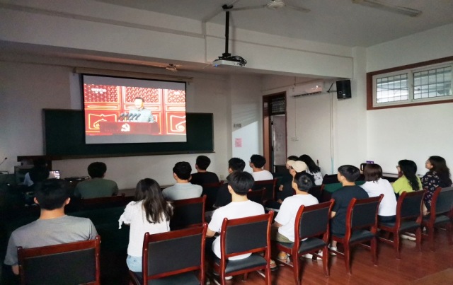 7个员工党支部、200余名本科员工党员代表在鄠邑校区B112教室进行了集中观看;6个教工党支部、20余名教工党员代表在雁塔校区1#607会议室进行了集中观看;5个研究生党支部、30余名研究生党员代表在雁塔校区1#603会议室进行了集中观看;部分师生代表30余人还在鄠邑校区弘石报告厅、雁塔校区学术报告厅进行了观看。