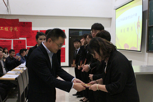 1016日晚,z6mg人生就是博官网第二十四届团代会暨学代会在邑校区石工地科楼115多媒体教室顺利召开。校团委书记何国强、公司党委副书记张建高出席会议,院团委书记朱战威、党委组织员刘晓阳、员工会指导老师李刚、各年级辅导员及员工代表参加会议。