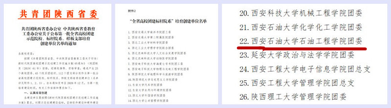 此次共青团陕西省委、中共陕西省委教育工委共遴选出25个高校团委、45个院系团组织为首批全省高校团建示范院校和标杆院系,公司团委位列其中。
